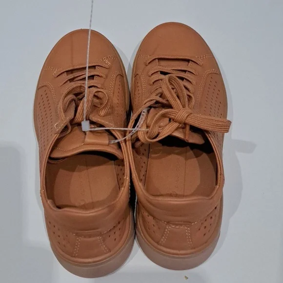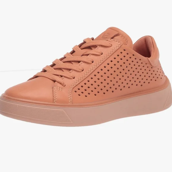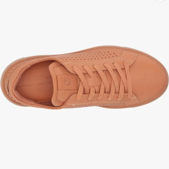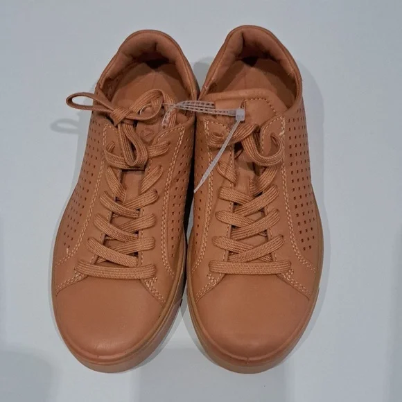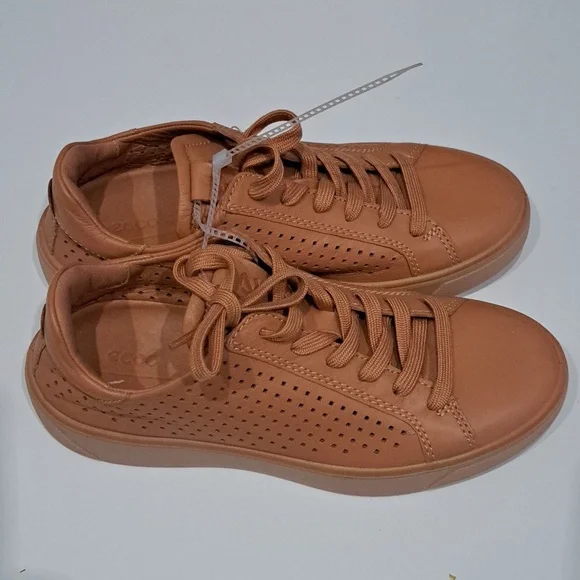 State-of-the-art sole design provides powerful traction in this lace-up sneaker with breathable perforations and an anatomical footbed.Lace-up styleFluidform™ technology provides anatomical support and a durable bond between the upper and soleECCO Tray technology provides powerful grip for extra stabilityRemovable, cushioned insoleLeather upper and lining/synthetic and rubber soleImportedNew without box, store marking at outsoles